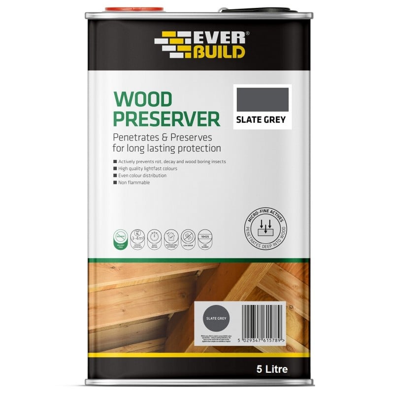 New Colour Slate-Grey 5 litre wood preserver now solvent free, low odour solution based on Micro-fine active technology.