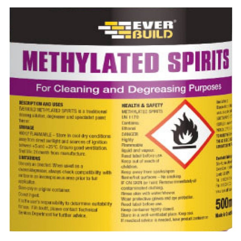 Everbuild Methylated Spirits can also be used as a cleaner and degreaser for paintwork, glassware and wiping resinous matter from knots prior to knotting and decorating.