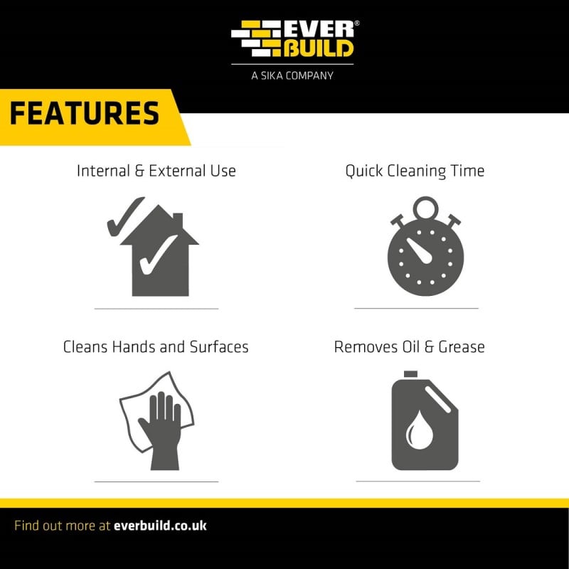 Cleans wet and semi-cured paints, sealants, adhesives, bitumen, polyurethanes, expanding foams, polyester fillers and epoxies from hands, tools and surfaces.