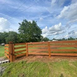 For timbers being set in the ground, apply Bitumen Paint to protect against ground water saturation.