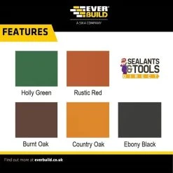 Everbuild shed and fence Mate designed for use on all rough sawn garden timber including sheds, fences, gates, hutches, kennels, cold frames and trellises.
