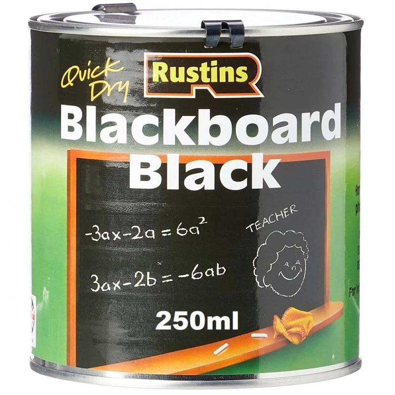 Rustins BLAB250 Quick Drying Premium Blackboard Paint gives a matt black non-reflective surface for blackboards and photographic work because it is non reflective..