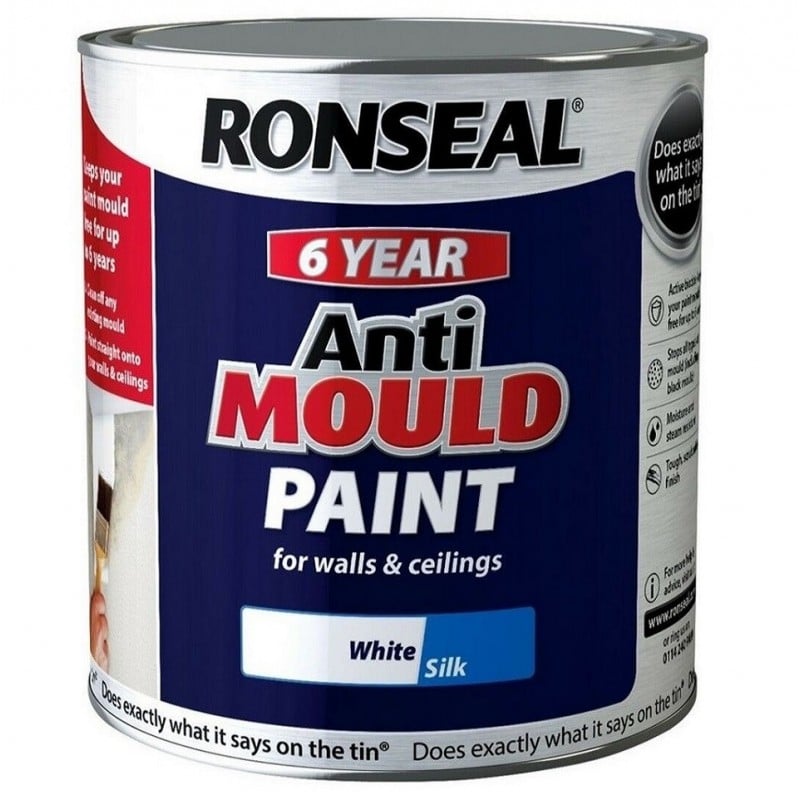 Ronseal white silk Anti Mould Paint protects walls and ceilings from mould growth